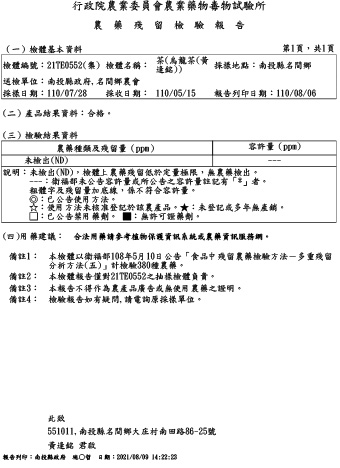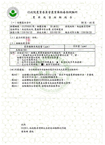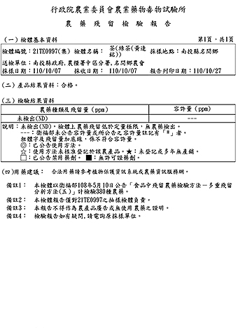 綠茶(四季春) 2021.10.27 行政院農委會茶葉改良場 農藥檢測 未驗出綠茶_黃逢銘
